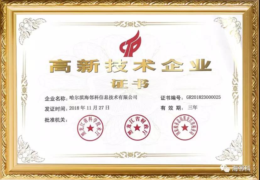 近日,繼深圳海鄰科總公司獲得2017年國(guó)家高新技術(shù)企業(yè)資格認(rèn)定以來,旗下哈爾濱海鄰科子公司又獲得2018年國(guó)家高新技術(shù)企業(yè)資格認(rèn)定。