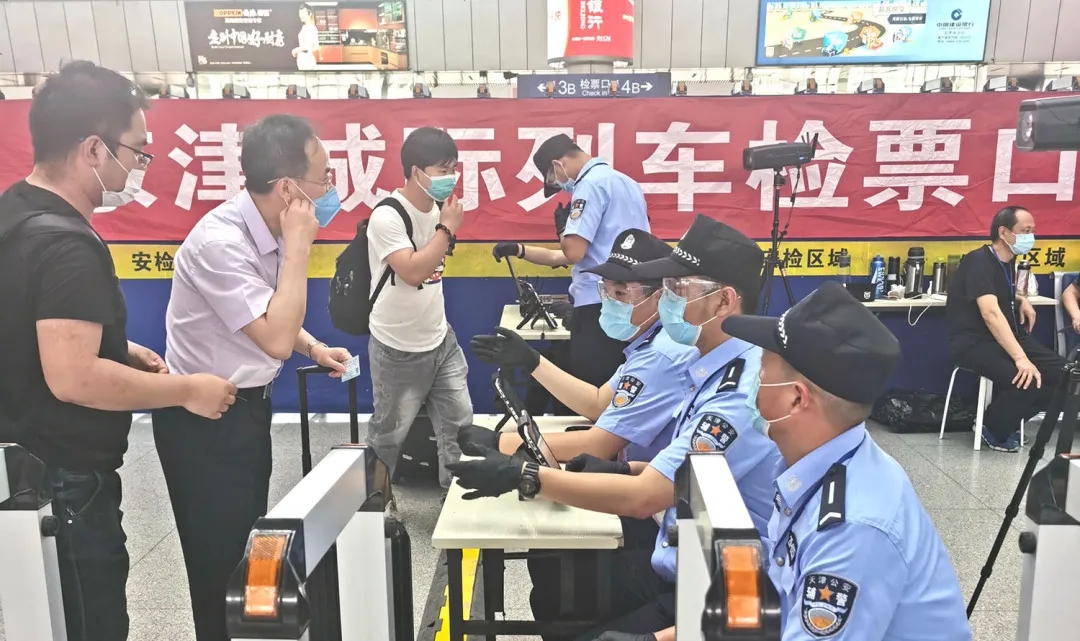 天津火車站和高鐵站的進(jìn)京二次安檢通道入口處,民警正在使用海鄰科公司的X3和X3Pro移動警務(wù)終端,進(jìn)行信息采集和安全檢查。