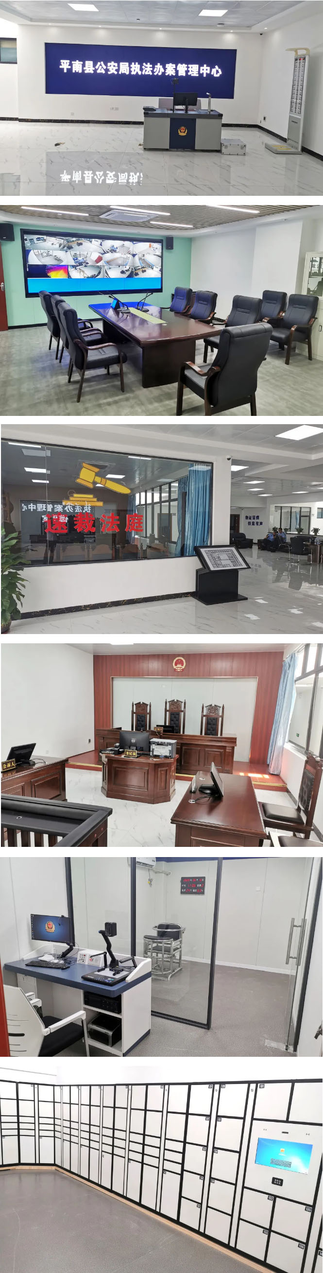 平南縣公安局智慧執(zhí)法辦案管理中心建有縣公安局執(zhí)法辦案管理中心、涉案財(cái)物管理中心、案件管理中心、政務(wù)服務(wù)大廳及樂(lè)群派出所等5個(gè)公安基礎(chǔ)項(xiàng)目。依托海鄰科先進(jìn)技術(shù)和成熟經(jīng)驗(yàn),以嚴(yán)格規(guī)范公正文明執(zhí)法為主線,以解決執(zhí)法突出問(wèn)題為導(dǎo)向,構(gòu)建執(zhí)法管理、辦案區(qū)管理、案件卷宗管理和涉案財(cái)務(wù)管理“四位一體”執(zhí)法管理機(jī)制,打造“系統(tǒng)嚴(yán)密、規(guī)范高效”的執(zhí)法監(jiān)督管理體系。通過(guò)對(duì)“案”、“人”、“物”、“卷”、“場(chǎng)”、“視”,六要素的管理,打通“監(jiān)”、“管”、“警”、“辦”、“查”、“統(tǒng)”六環(huán)節(jié),形成對(duì)案件的沙盤式管理新模式,實(shí)現(xiàn)全要素、全過(guò)程、全領(lǐng)域管理和“閉環(huán)式”全覆蓋管控。同時(shí),與法院合作,在辦案中心建設(shè)有速裁法庭,可以快速處理符合速裁條件的案件,提升效率。