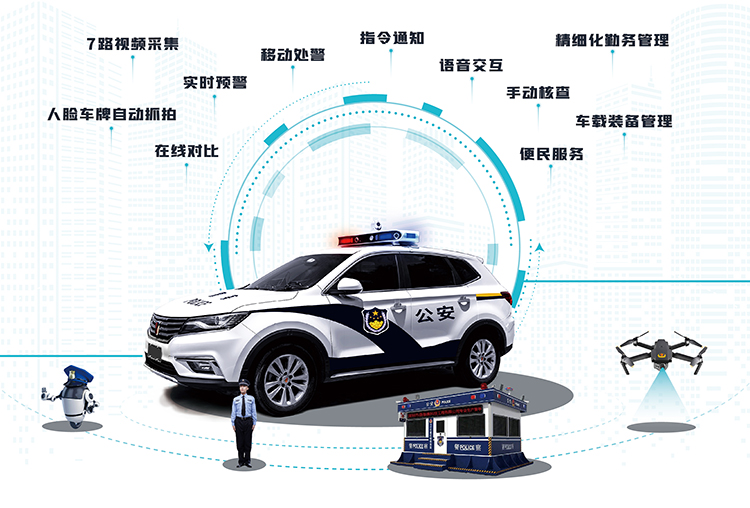 5G+AI智能裝備實(shí)現(xiàn)移動(dòng)接處警、自動(dòng)采查、巡邏布控、打造巡邏防控新模式。