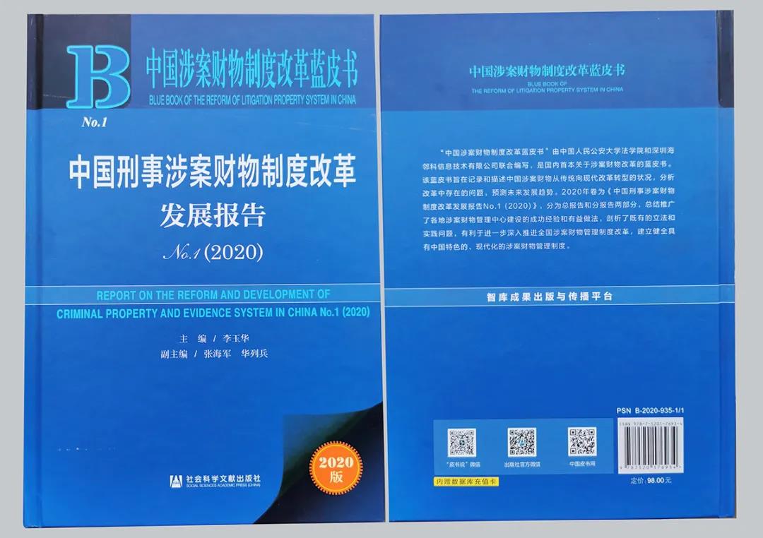 自2019年11月召開中國刑事涉案財物改革報告2020藍皮書啟動會,到2020年12月《中國刑事涉案財物改革報告2020》藍皮書正式發(fā)布,歷時1年多完成內容的編寫和出版。該書是目前國內第一部研究涉案財物改革發(fā)展的報告,由中國人民公安大學法學院院長李玉華擔任主編,深圳市海鄰科信息技術有限公司總裁張海軍和北京市公安局副局長華列兵為副主編,社會科學文獻出版社出版。該書分為總報告和城市地區(qū)分報告,總報告包括改革背景、改革政策與法律、改革實踐與探索以及未來發(fā)展;城市地區(qū)分報告主要挑選部分城市地區(qū),歸納總結各地涉案財物管理的先進做法和經驗,快速推動中國涉案財物制度的改革和發(fā)展。