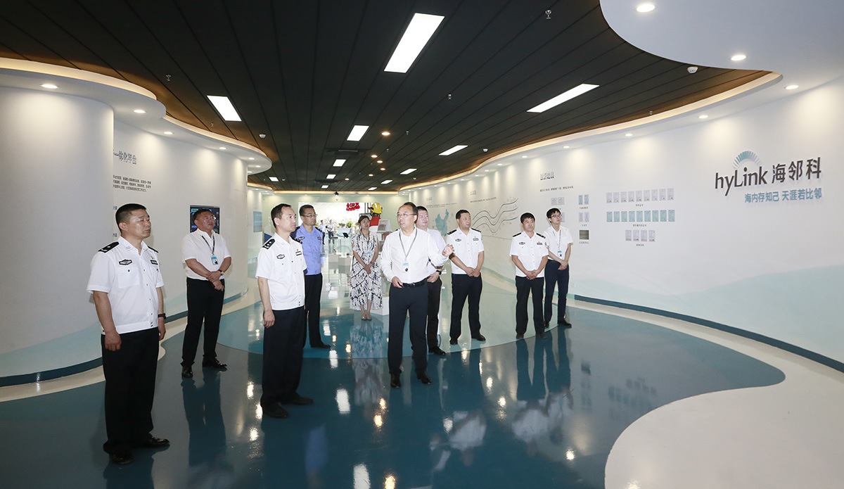 簽約儀式開(kāi)始前,史衍芳局長(zhǎng)在張海軍董事長(zhǎng)的陪同下,參觀(guān)了海鄰科公司警用智能裝備展廳、研發(fā)團(tuán)隊(duì)工作現(xiàn)場(chǎng),了解海鄰科公司戰(zhàn)略布局、發(fā)展歷程和企業(yè)文化。