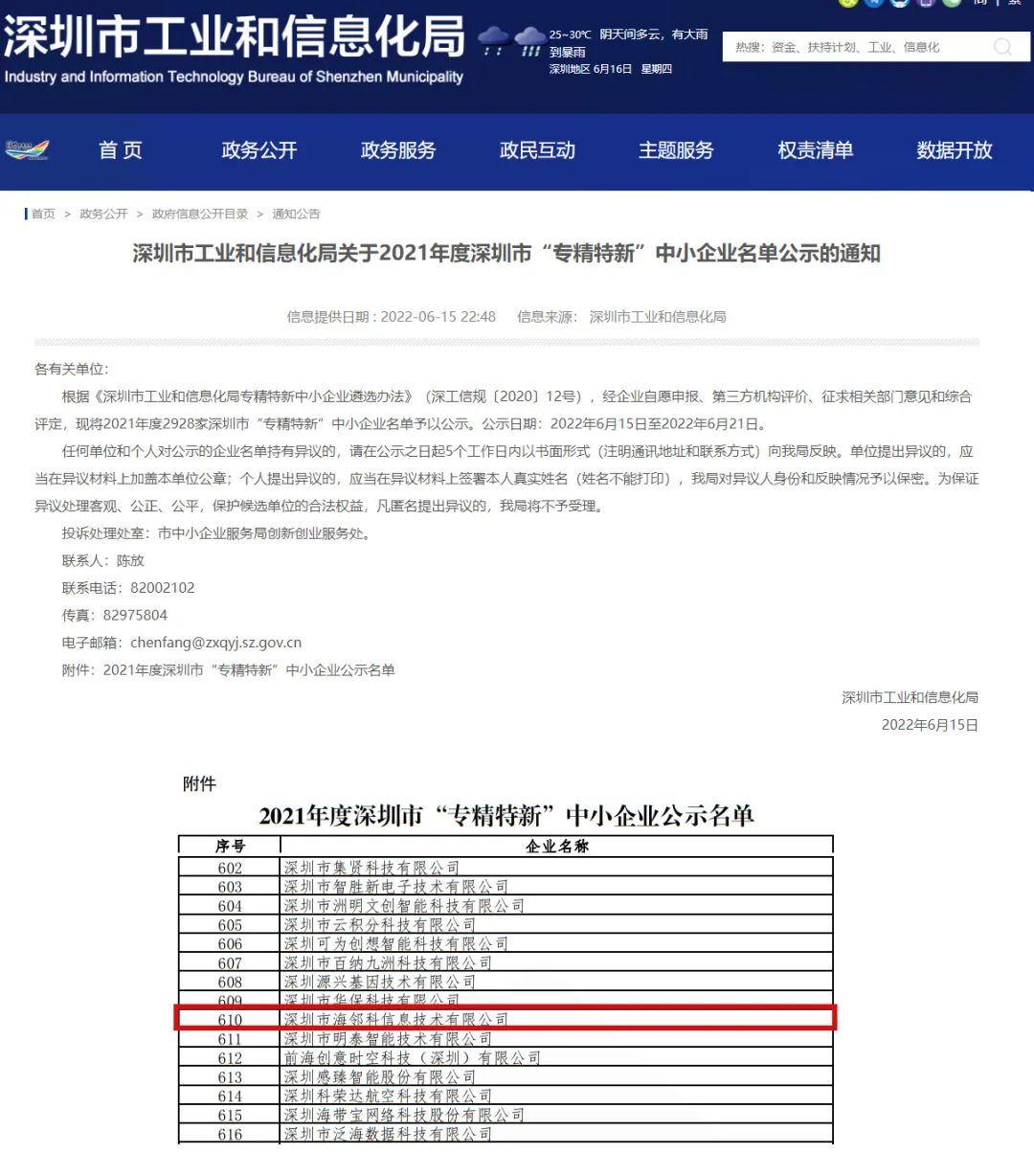 近日,深圳市工業(yè)和信息化局發(fā)布關(guān)于2021年度深圳市“專精特新”中小企業(yè)名單公示的通知,深圳海鄰科依托持續(xù)的創(chuàng)新能力,獲評“專精特新”企業(yè)稱號。