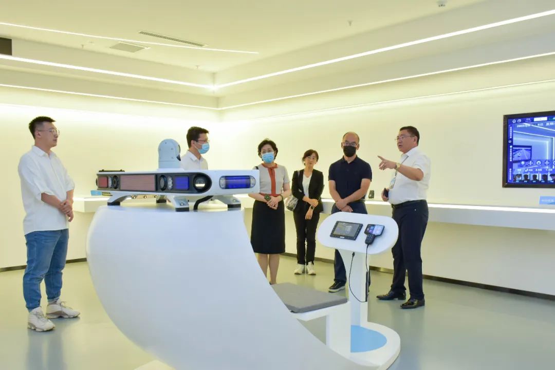 喬躍山司長和官英敏副廳長一行參觀了海鄰科數(shù)字化體驗中心,了解了海鄰科的發(fā)展歷程,并聽取了丁福生副總裁在企業(yè)發(fā)展布局、研究與開發(fā)、人才引進(jìn)與建設(shè)等各方面進(jìn)展的匯報。