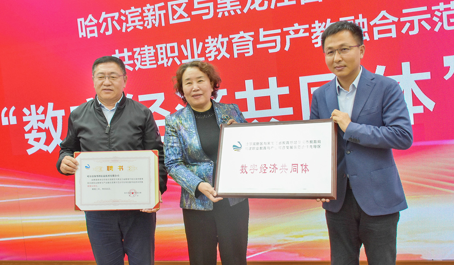 哈爾濱新區(qū)“數(shù)字經濟共同體”是在哈爾濱新區(qū)管理委員會指導下,由知名企業(yè)、產業(yè)園區(qū)、普通高校、職業(yè)院校、科研機構、行業(yè)社會組織等發(fā)起成立的產教融合、數(shù)字經濟發(fā)展平臺。大會通過了“數(shù)字經濟共同體”章程和秘書處名單,宣布海鄰科公司和哈爾濱商業(yè)大學當選為“數(shù)字經濟共同體”理事長單位。