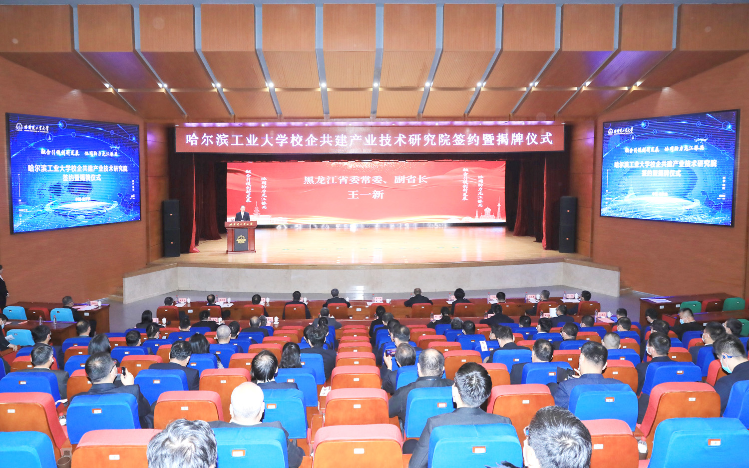 黑龍江省委常委、副省長王一新和哈工大黨委書記熊四皓出席儀式,并為研究院揭牌,黑龍江省人民政府副秘書長李明春主持本次簽約會(huì)。