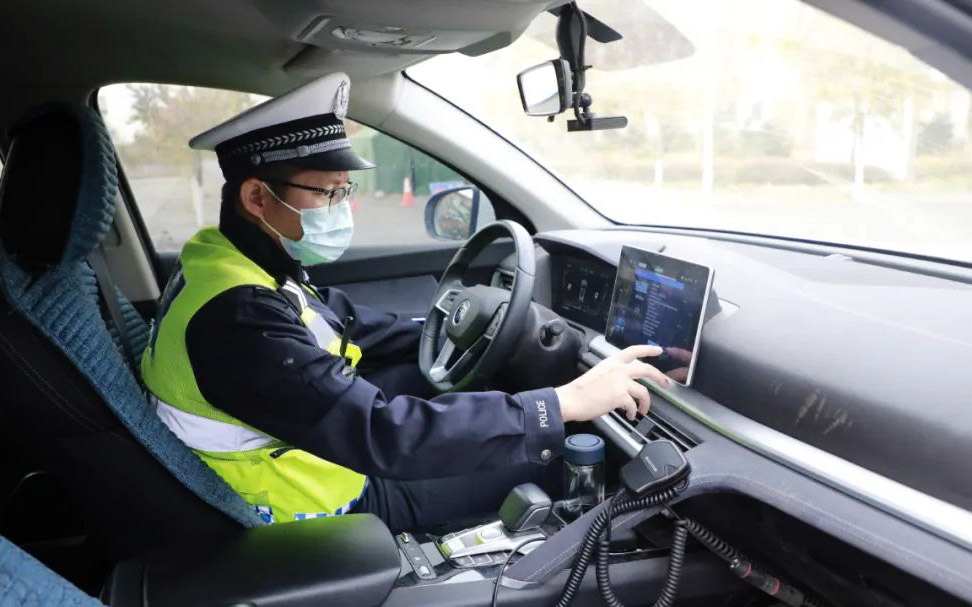 在“智慧警車”內(nèi),系統(tǒng)可實(shí)時(shí)顯示全市現(xiàn)有巡邏車具體位置,能看到巡邏出警的民警在哪里,遇到“110”警情時(shí),可以直接在車內(nèi)開展接警、處置工作。