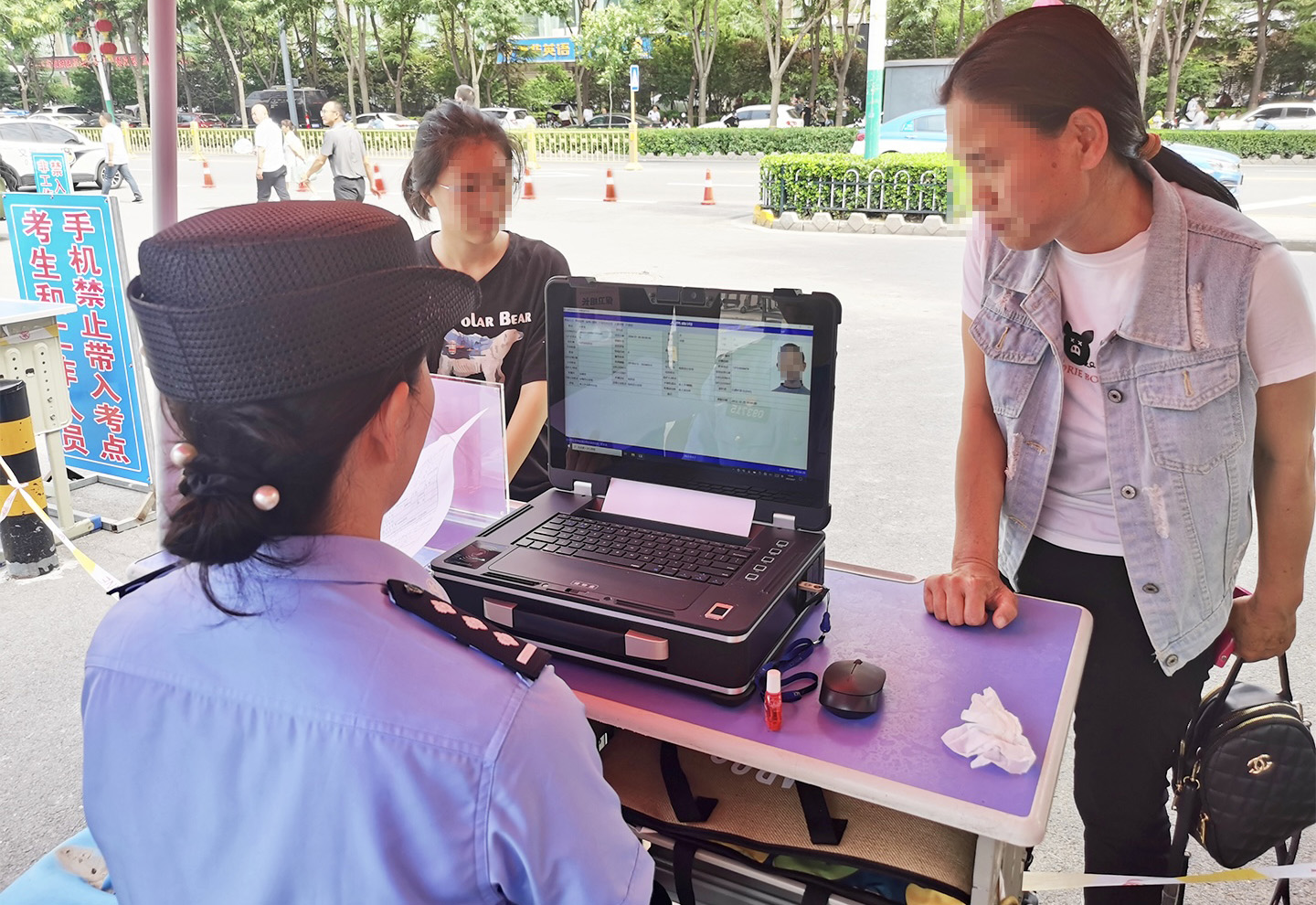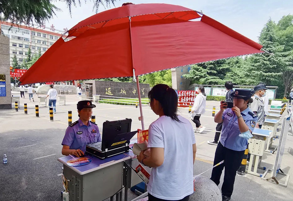 “不用著急,我們馬上幫這位同學(xué)辦理臨時(shí)身份證明?!泵窬F(xiàn)場(chǎng)核查了考生的身份信息后,利用移動(dòng)警務(wù)一體箱,很快為該同學(xué)辦理了臨時(shí)身份證明。