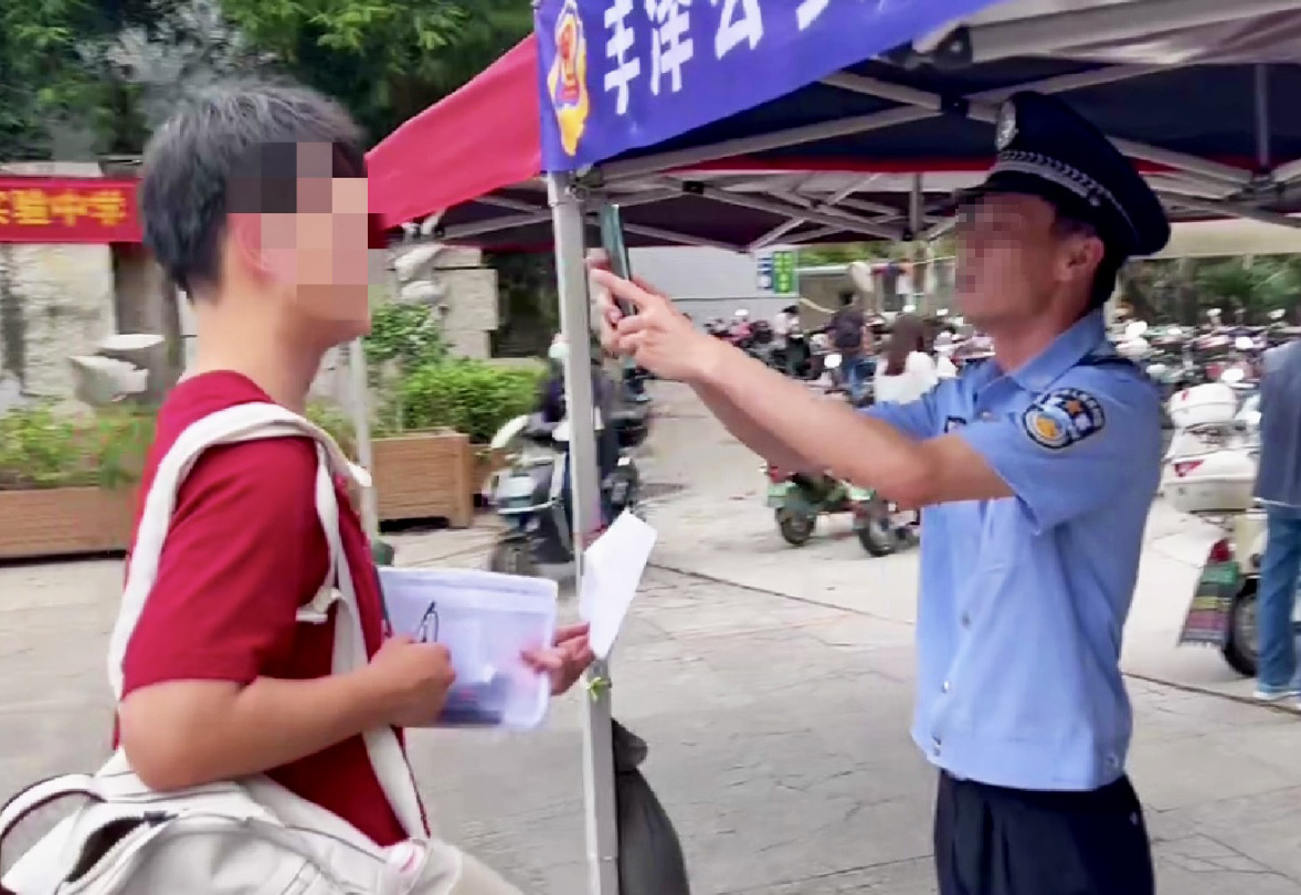 福建豐澤公安設(shè) “警務(wù)服務(wù)點(diǎn)”為考生守護(hù)夢(mèng)想啟航。“警察同志,快幫幫忙,有位同學(xué)的身份證突然找不到了……”6月7日下午,距離高考數(shù)學(xué)開考只剩不到10分鐘的時(shí)間,在泉州實(shí)驗(yàn)中學(xué)濱江校區(qū)高考考點(diǎn),一考場(chǎng)工作人員心急如焚地向考點(diǎn)執(zhí)勤的豐澤公安民警求助。