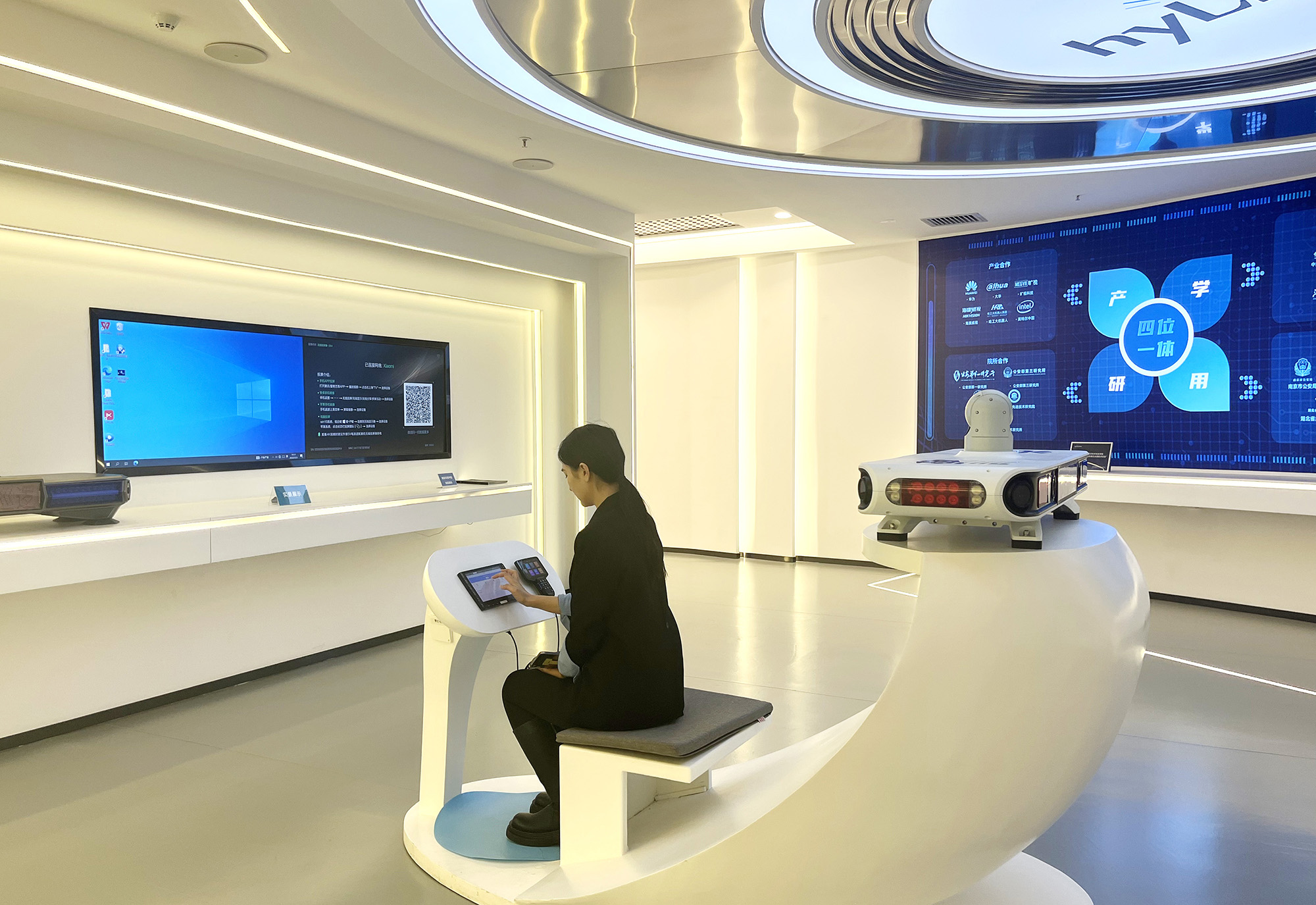 在海鄰科數(shù)字化展廳內(nèi),政務(wù)一體化機(jī)器人、智慧警務(wù)和智慧綜治系統(tǒng)、5G智慧公車(chē)系統(tǒng)及裝備、智能消防系統(tǒng)和裝備等一系列軟件系統(tǒng)平臺(tái)和智能硬件裝備,展示了海鄰科在基層社會(huì)治理數(shù)字化方面的技術(shù)創(chuàng)新和研發(fā)生產(chǎn)能力。