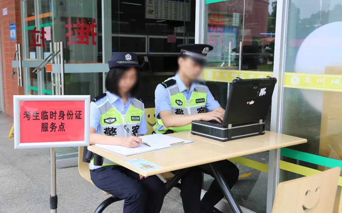 考生或家長到“考生身份證明服務(wù)站”辦理臨時身份證明,只需要提供姓名、二代身份證號碼、準(zhǔn)考證等證明,由服務(wù)站民警核查相關(guān)信息后,經(jīng)核實信息正確無誤,即可馬上出具臨時身份證明,從核驗身份到開具證明僅需1分鐘,確??忌米C需求。