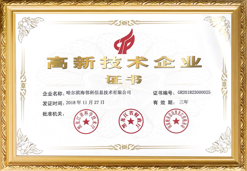 喜訊:海鄰科哈爾濱子公司獲得2018年國家高新技術(shù)企業(yè)資格認(rèn)定